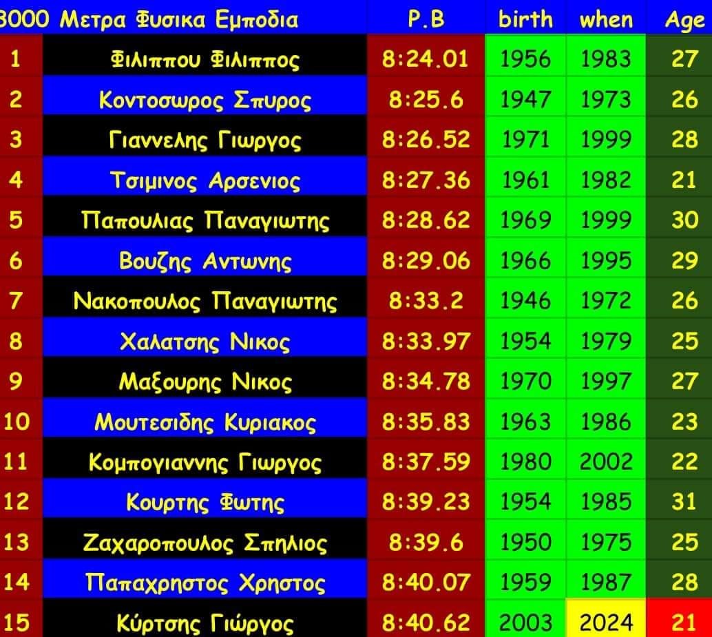 Έγραψε ιστορία με φοβερή επίδοση ο Γιώργος Κύρτσης στα 3000μ με φυσικά εμπόδια (8’40”) στο διεθνές μίτινγκ των Βρυξελλών, η οποία είναι η καλύτερη επίδοση απο Έλληνα αθλητή τα τελευταία είκοσι δύο έτη στο αγώνισμα!