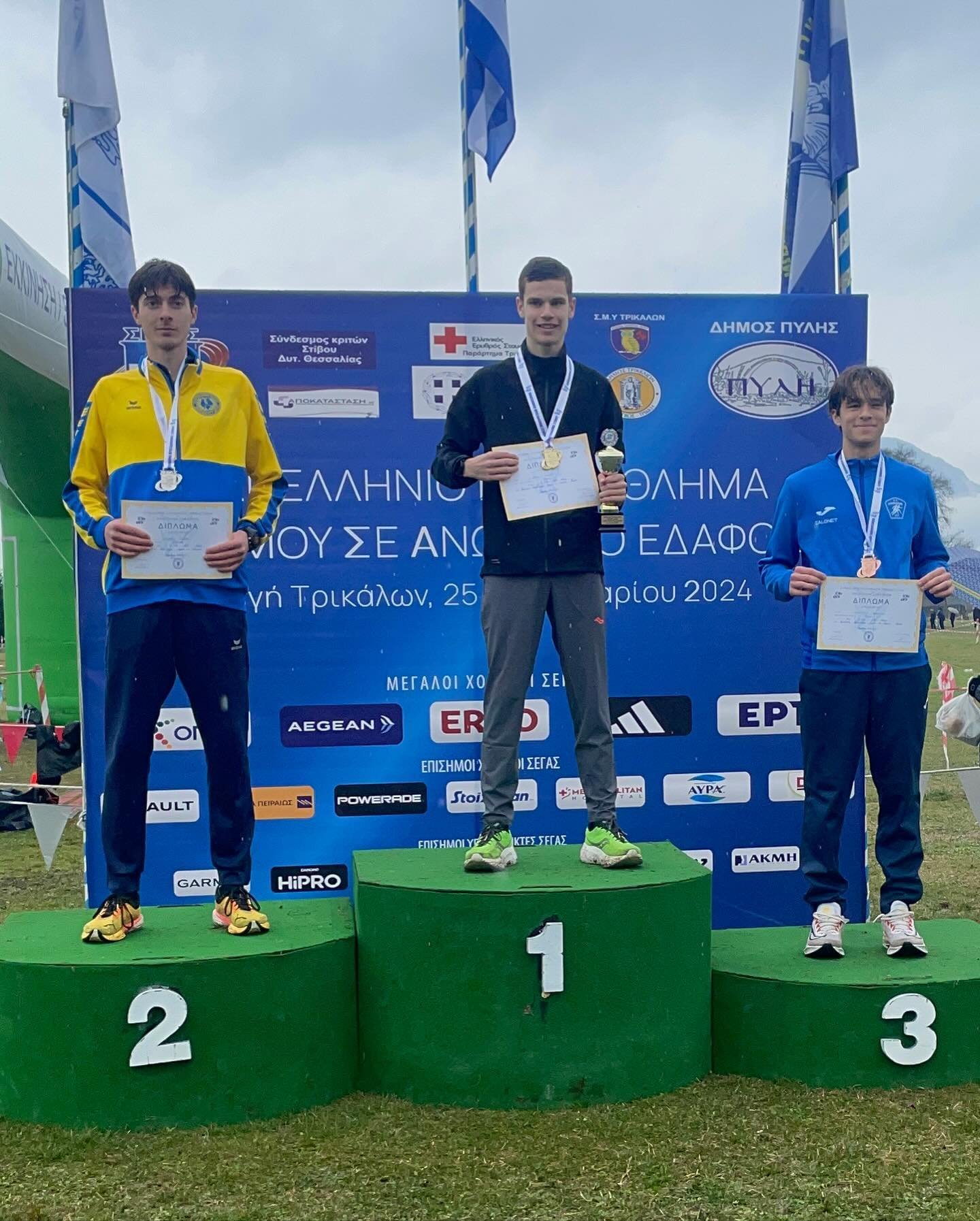 Αναλυτικά ο Διονύσης Καψάλης αναδείχτηκε Πρωταθλητής Ελλάδας στο δρόμο των 6000μ Κ20 και μαζί με τους Γιώργο Τσώνη και Γιάννη Ματσούκα κατέκτησαν το ασημένιο μετάλλιο στην ομαδική κατάταξη. Στα 8000μ Κ23 ο Νίκος Σταμούλης επικράτησε άνετα των αντίπαλων του και στέφθηκε Πρωταθλητής στην κατηγορία του. Στο ίδιο αγώνισμα ο Γιώργος Κύρτσης κατέλαβε την τέταρτη θέση επιβεβαιώνοντας την ανοδική του πορεία μετά τις εντυπωσιακές του εμφανίσεις στον Κλειστό Στίβο. Ο Κώστας Σταμούλης τερμάτισε στην πέμπτη θέση στα 10000μ Ανδρών βελτιώνοντας το ρεκόρ του στη διαδρομή αυτή.
